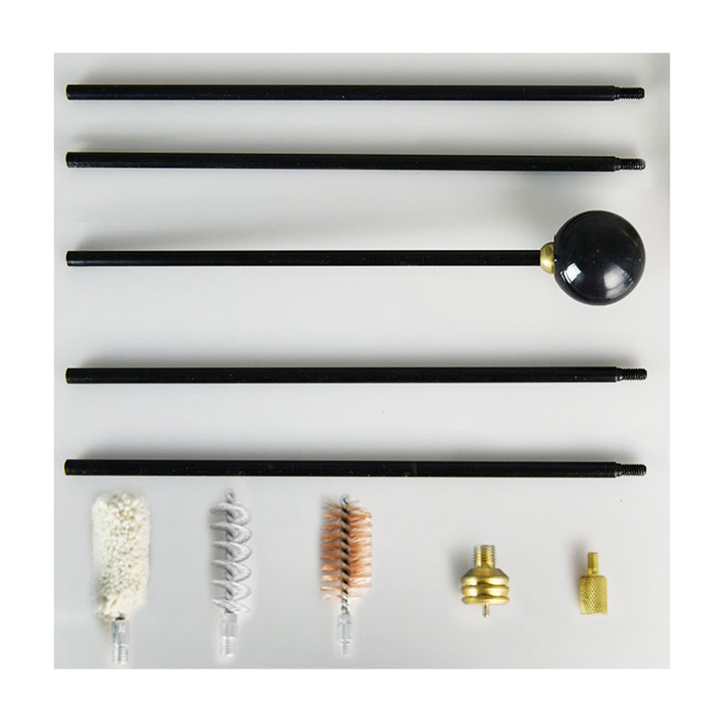Profesjonalny zestaw do czyszczenia broni do strzelby. Kulisty uchwyt zapewnia wygodny chwyt w dłoni. Precyzyjnie obrobione pręty są mocne, długie, proste i gładkie, bez uskoku na połączeniach.