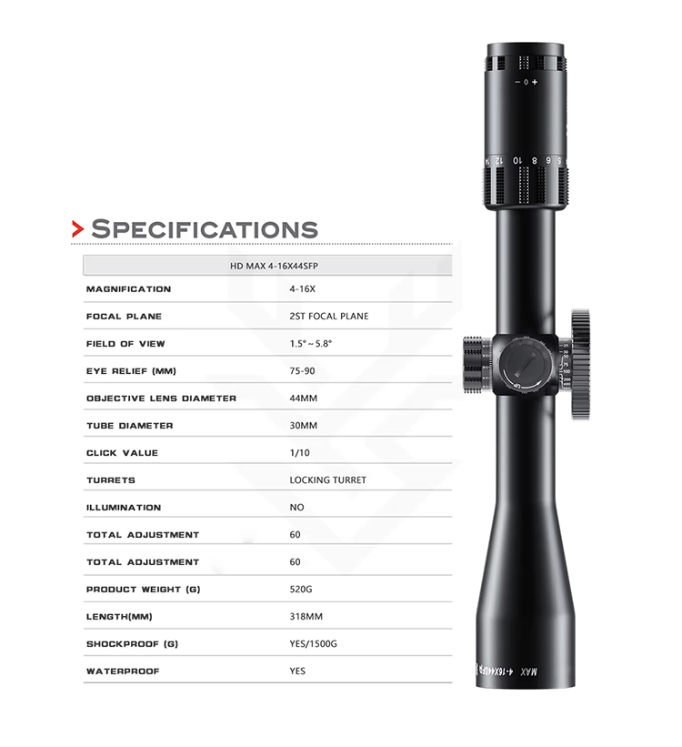 Monokularowy teleskop myśliwski HD MAX 4-16X44SFP HD - sprzedaż hurtowa