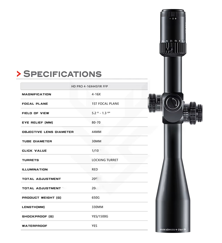 Optyka HD PRO 4-16X44 SFIR FFP wysoka odporność na wstrząsy luneta myśliwska taktyczna strzelanie dalekiego zasięgu rura 30mm