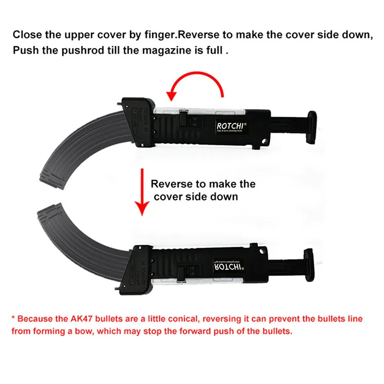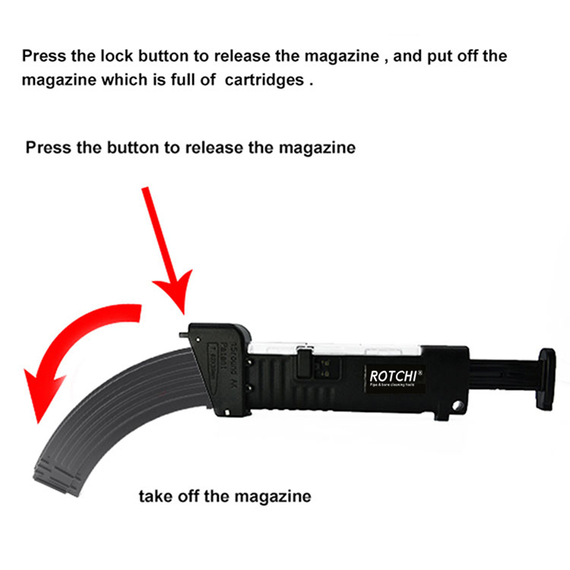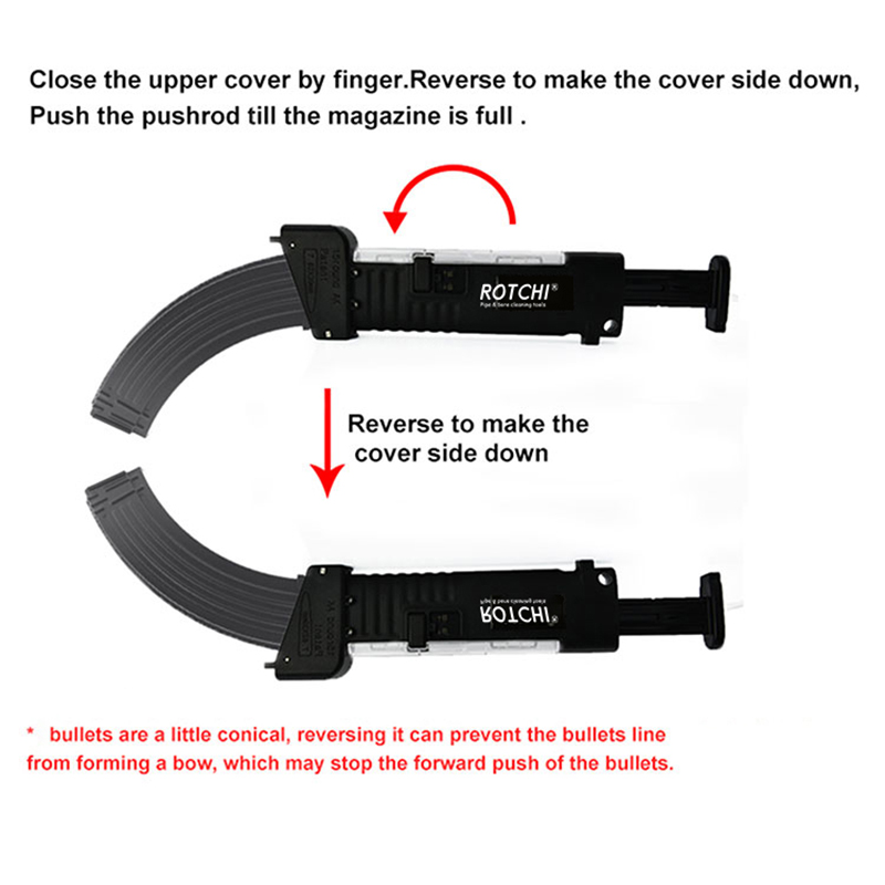 ● Wypełnij naboje całkowicie w rowku, zamontuj magazynek na takiej samej zasadzie mechanicznej jak AK. naciśnij popychacz, naboje z łatwością wejdą do magazynka.