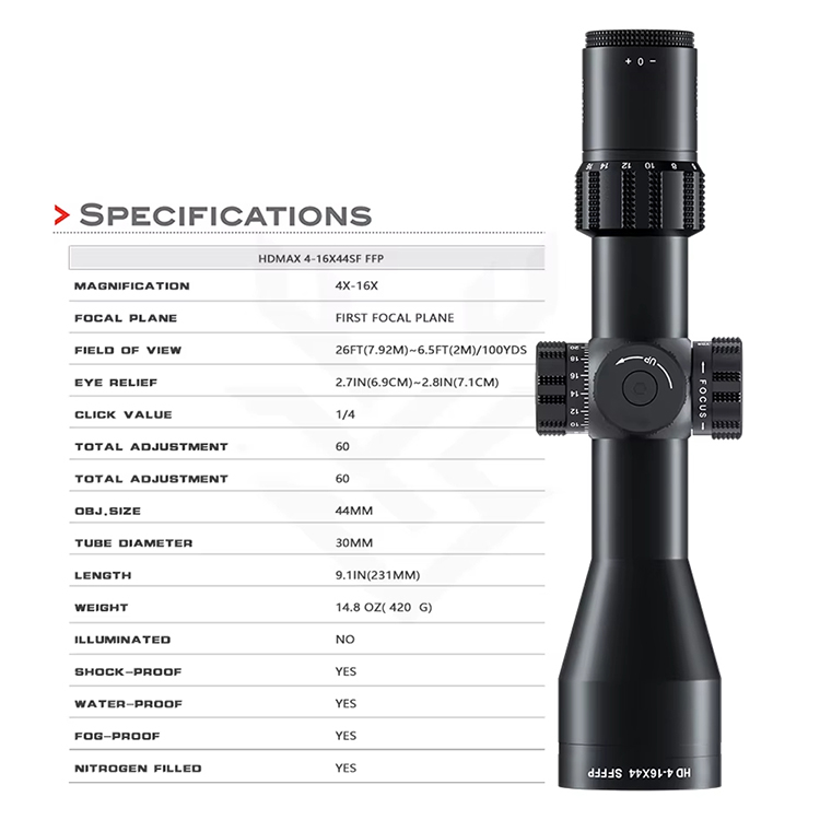 Hurtownia monokularowego teleskopu myśliwskiego FFP HD MAX 4-16X44SF HD