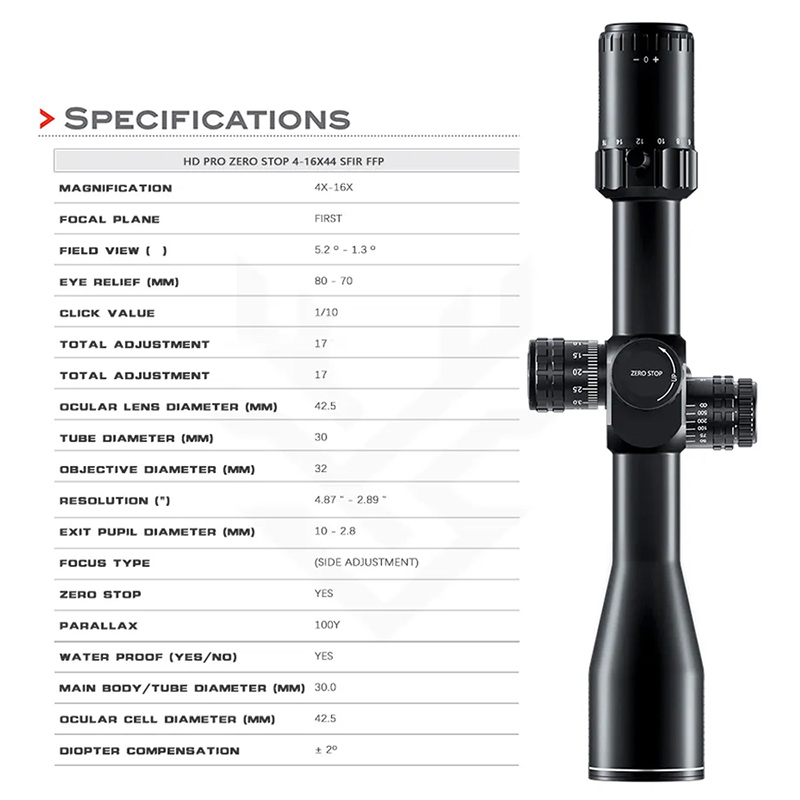 Optyka HD PRO ZERO STOP 4-16x44 SFIR FFP Wysoka odporność na wstrząsy myśliwska
