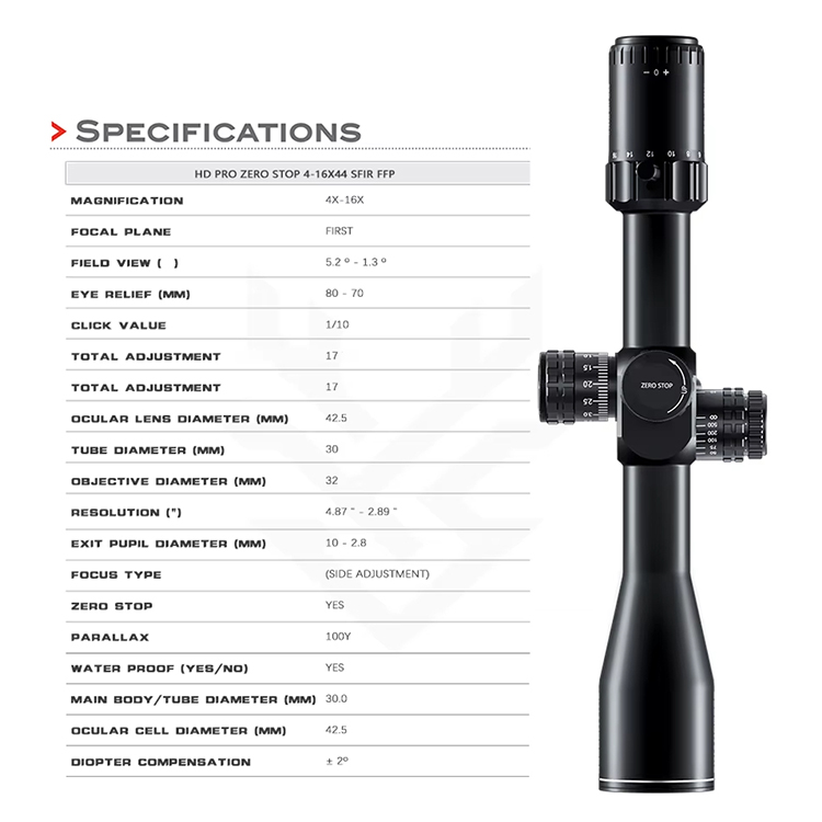 ZERO STOP 4-16X44 SFIR FFP-A 30MM średnica HD transmitująca światło Zero Stop luneta myśliwska Ffp